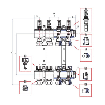 Rozdzielacz ogrzewania RUMET 70B 4 obwodowy