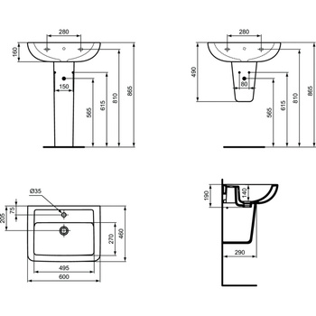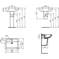 ( ilość produktów: 1055 )Umywalka IDEAL STANDARD ECCO prostokątna, biała, 600mm, otwór na baterię na środku, wiszący, bez odpływu przelewowego