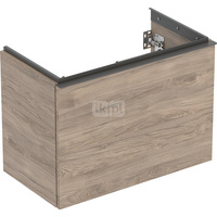 Szafka pod umywalkę Geberit Acanto, z szufladą i szufladą wewnętrzną: Szerokość umywalki=90cm, Korpus i front: dąb / melaminowa struktura drewna, Uchwyt: lava / malowany proszkowo, matowy