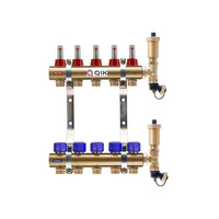 Rozdzielacz do ogrzewania podłogowego QIK BASIC II TN 5-obieg. mosiądz GW 1'' x GZ 3/4'' + przepływomierz